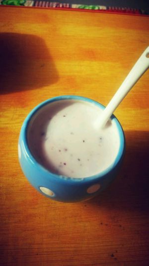 放入酸奶机(8-10小时)所以晚上睡前做上,第二天早上刚好吃一次温温的酸奶,多余冰箱冷藏,这样一星期的酸奶量有着落了