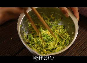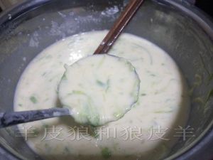 用筷子顺时针混合西葫芦丝和面粉