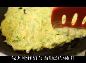 平锅放少许油,将面糊放入均匀摊开。