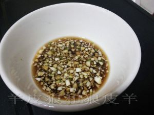 这十分钟可以制作蒜汁,蒜剁碎或者捣碎(从健康角度此时可以刻意让蒜泥蒜碎暴露空气充分氧化)后加入生抽和米醋调匀。