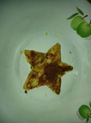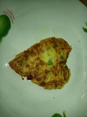 锅里放油,不需要太多,晃匀,如果有煎蛋模具,可以用模具定型,没有可以直接用勺子摊在锅底,待单面煎变色,定型,翻一面,继续!