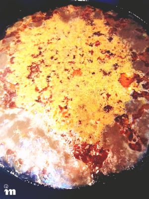 放入少量食用油,加入姜蒜爆香后加入适量水等待烧开,再放入整包调料