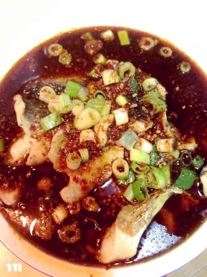再下入花椒小火至香,淋在鱼片上即可 注 意 鱼 片 在 片 的 时 侯 一 定 要 顺 刺 片 ,不 然 会 有 很 多 的 小 碎 刺 . 喜 欢 辣 的 朋 友 可 以 在 放 红 油 的 时 侯 多 放 辣 椒 干 .