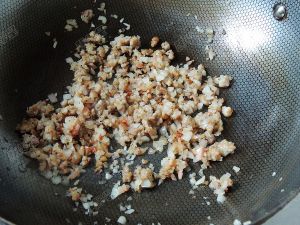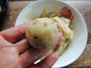 将炒好的料连同土豆泥一起装入碗中混合均匀