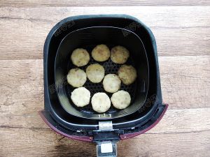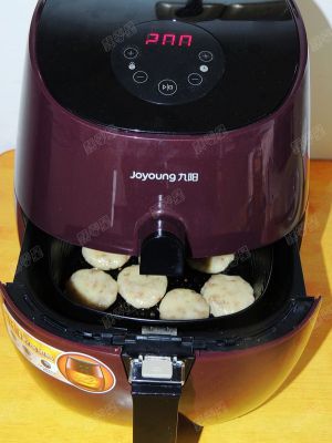 九阳空气炸锅200度预热五分钟,将土豆饼平铺在空气炸锅的炸篮内