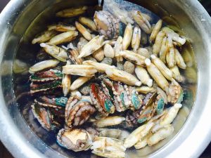 依旧先用盐水泡了吐沙!时间充足泡大半天,这样沙吐的干净一些!