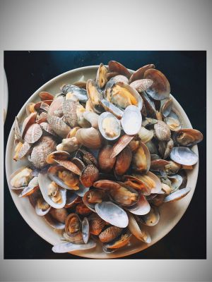 花蛤盐水泡,多换几次水,一定要买新鲜的,不然不开口。