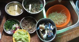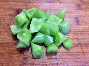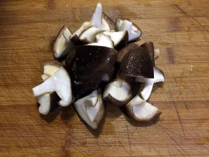 准备素菜:圆葱、香菇、青椒、芹菜切好备用