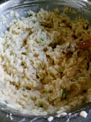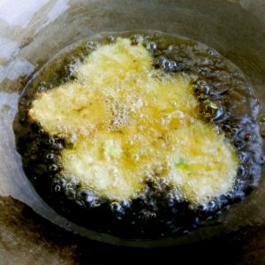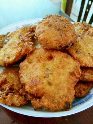 锅里倒入油,油开放小火,将和好的馅用勺子放入锅中,拍成饼型,当表面变成金黄即可出锅