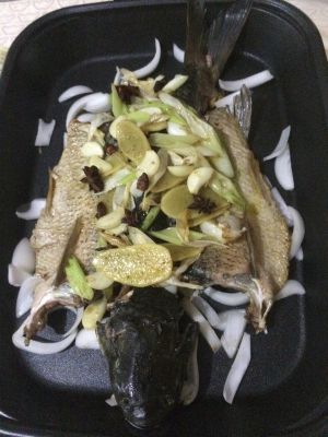 盘子铺锡纸(没有也可以),刷色拉油,把腌好的鱼放上进微波炉,使用微波加光波档10分钟,取出将鱼翻面继续进微波炉烤十分钟即可。