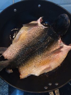将带鱼收拾好,切段儿,黄花鱼去内脏,头部(喜欢吃鱼头的人也可以留下不扔!)