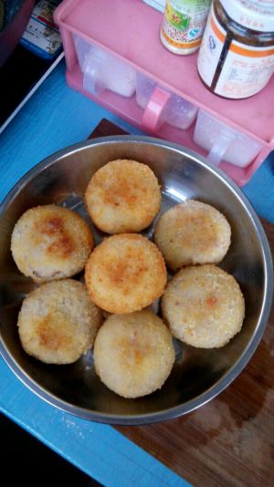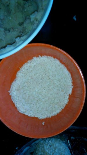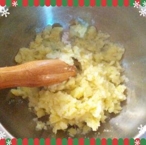 将熟了的土豆,用勺子压成泥,越细越好!可以加些盐