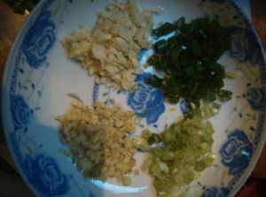 准备姜蒜末,葱末,葱花。