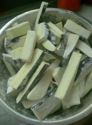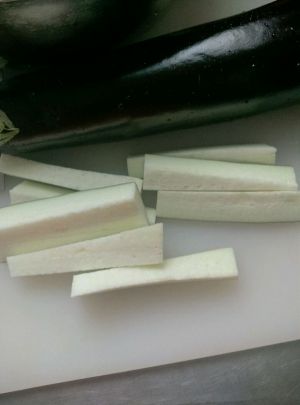 先将茄子切成条。