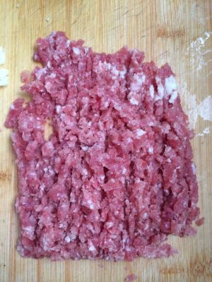 准备好配料,香菜,肉切成沫,小米辣切丁,大蒜,生姜切沫。