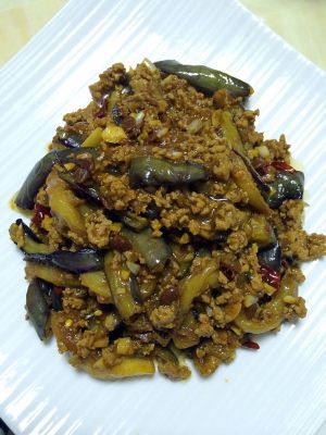 等豆瓣酱和葱姜蒜末炒香后放白糖、少量酱油、醋和清汤(没有清汤可放白水)放入炸好的茄子 收干汁后,用水淀粉勾芡