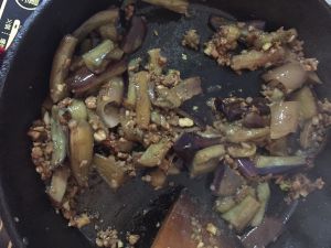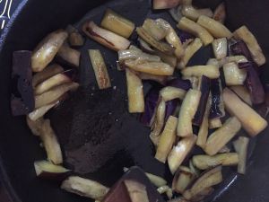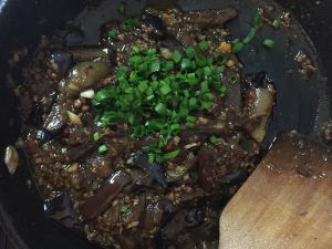 大火炒制茄子软了后,加入料酒,放少许鸡精。最后加入一点热水,焖至收汁。最后出锅,放入葱花。