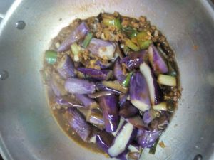 葱姜蒜爆过 把肉末炒七分熟放茄子