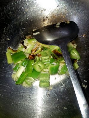 葱呛锅,放入肉馅炒散,加入生抽蚝油,快熟了加入大量蒜末。淋点水淀粉。