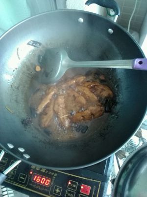 待鸡翅成金黄色倒入可乐 可乐以莫过鸡翅为准