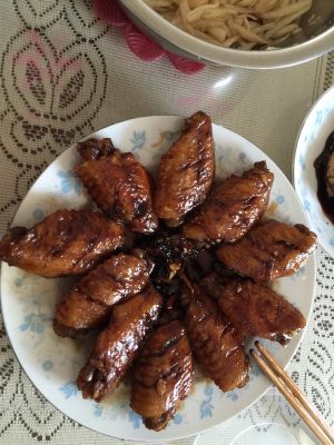 鸡翅洗净、放葱姜水中煮沸捞出、沥干水份