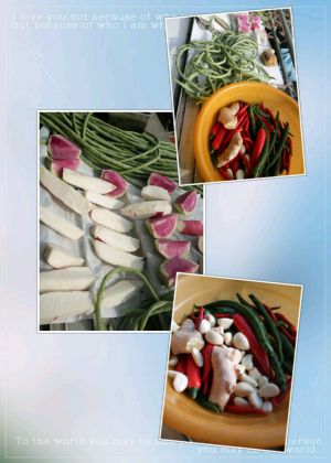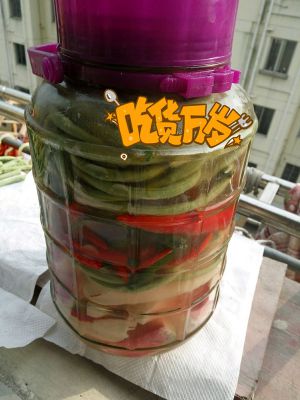 豇豆 芹菜 小葱(放在最上面泡3天后捞出) 嫩芸豆 扁豆。