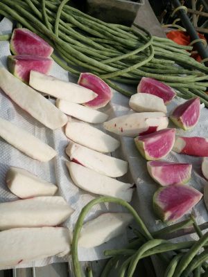 等盐水冷却的过程中可以把所有要入坛的蔬菜洗净、改刀,晾干