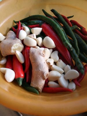 红菜椒 小米辣(去把留蒂) 仔姜。