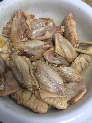 再把鸡翅中用生抽老抽腌制10~20分钟。