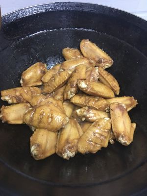 放入锅中翻炒,炒到鸡翅变大