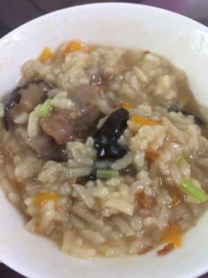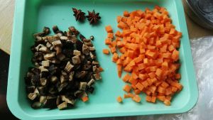 排骨洗净 干香菇切碎泡水 胡萝卜切丁 切好芹菜