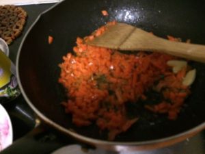 这时候就可以倒入胡萝卜,继续翻炒片刻。
