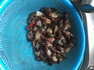小龙虾先在清水里面洗几遍,在用一把小刷子一个一个全部刷干净,然后用剪刀剪掉小脚,头部上部分,抽掉虾线。虾黄留下来不要丢掉了!