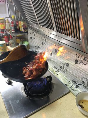 先用大火翻炒,这场景是不是有几分大厨的风范啊