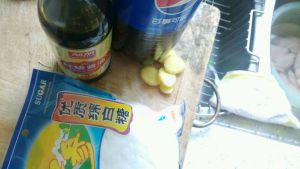 加入生姜,酱油适量,不需要放盐,滴两滴柠檬汁,再加可口可乐,莫没过鸡翅,开小火慢慢熬,大约20分钟