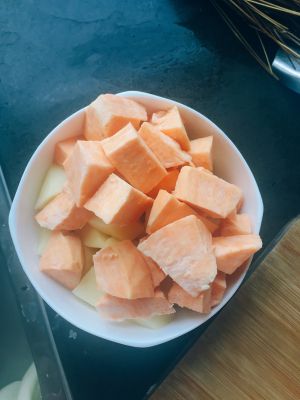 切好的地瓜和土豆,不要切太大块,容易煮不熟