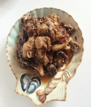 锅中先放少许油,把花椒,麻椒,辣椒,小火炒香,注意不要炒糊了。