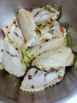 鸡翅划几道倒入酱油,料酒,葱姜蒜,花椒,盐,腌制半小时