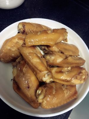 腌制好后热油,将鸡翅两面煎至金黄,另起锅油热后倒入花椒,葱姜蒜,八角,炒出香味后放入鸡翅翻炒直到深黄,倒入酱油,盐,十三香,干辣椒,可乐没过鸡翅或齐平,大火煮沸,小火收汁
