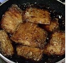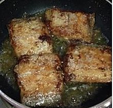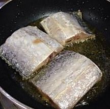 将带鱼下锅油炸至两面呈金黄色时,捞出控油