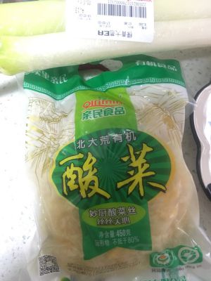 酸菜切丝儿,用凉水洗一下,控干水分备用!