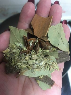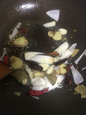 将八角 蒜 葱 姜 切片 备好 酸菜也切 粉丝泡好(最好热水泡)
