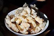 半个多小时后,清水会浮在淀粉上面,将清水倒掉。这时的淀粉会有些干不好抓,是可以用力抓动的。抓出混到肉里。