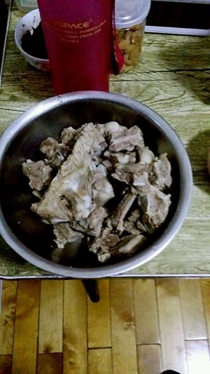 捞出,沥干,煮了二十分钟的排骨汤不要到了