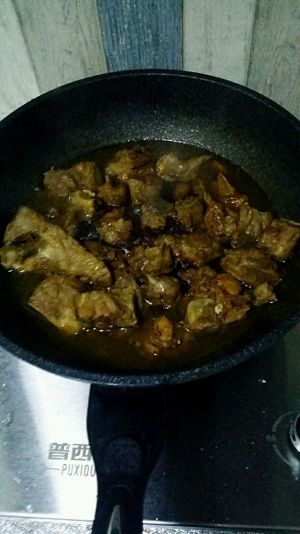 3.大约炖40分钟1小时,用筷子可以扎动肉。大火加入糖和粗。口味根据自己喜欢定量。一般一斤排骨三勺糖两勺醋。