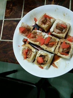 做法1:糯米酿豆腐