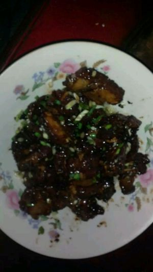 排骨熬好后可倒入配好的调料(注意,这时锅里必须有水,没有也可加入水),当水熬干后就盛入盘子里,撒上小葱,有芝麻的也可撒上