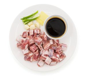 锅中放入500g水烧沸,下排骨沸水煮2分钟,沸去血水捞出冲洗干净沥干待用;