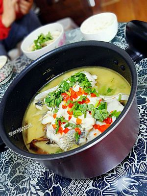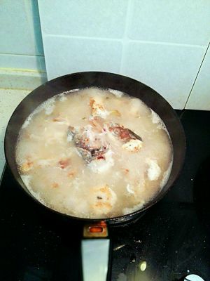 开锅后,鱼头鱼排炖两分钟加入鱼片。