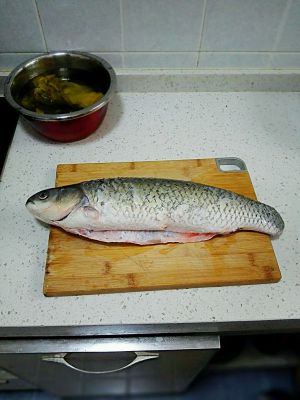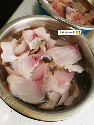 鱼肉切成片,也可以在卖鱼的那里切好,鱼骨 鱼片各放一个盆,用水泡会,泡出里面的血